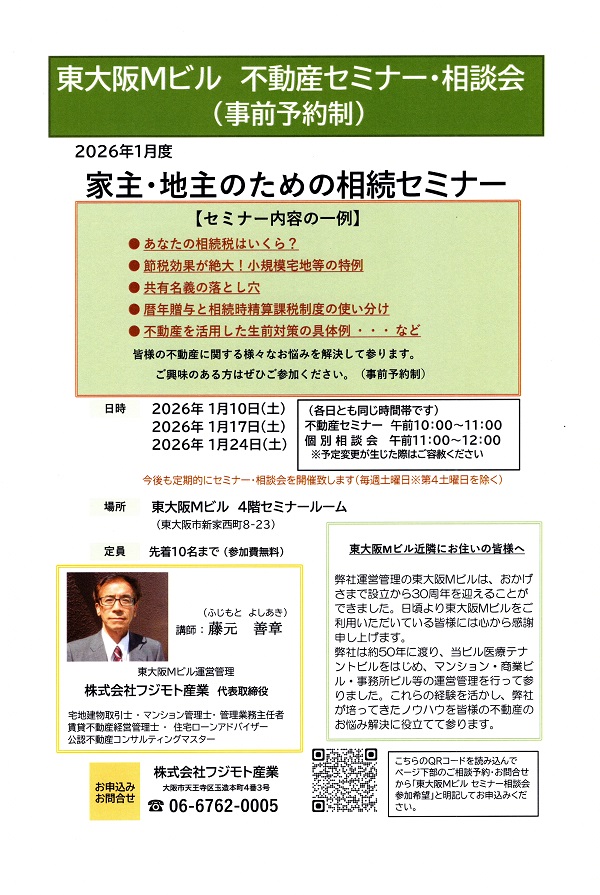 「東大阪Mビル セミナー相談会参加希望」としてお申し込みください。