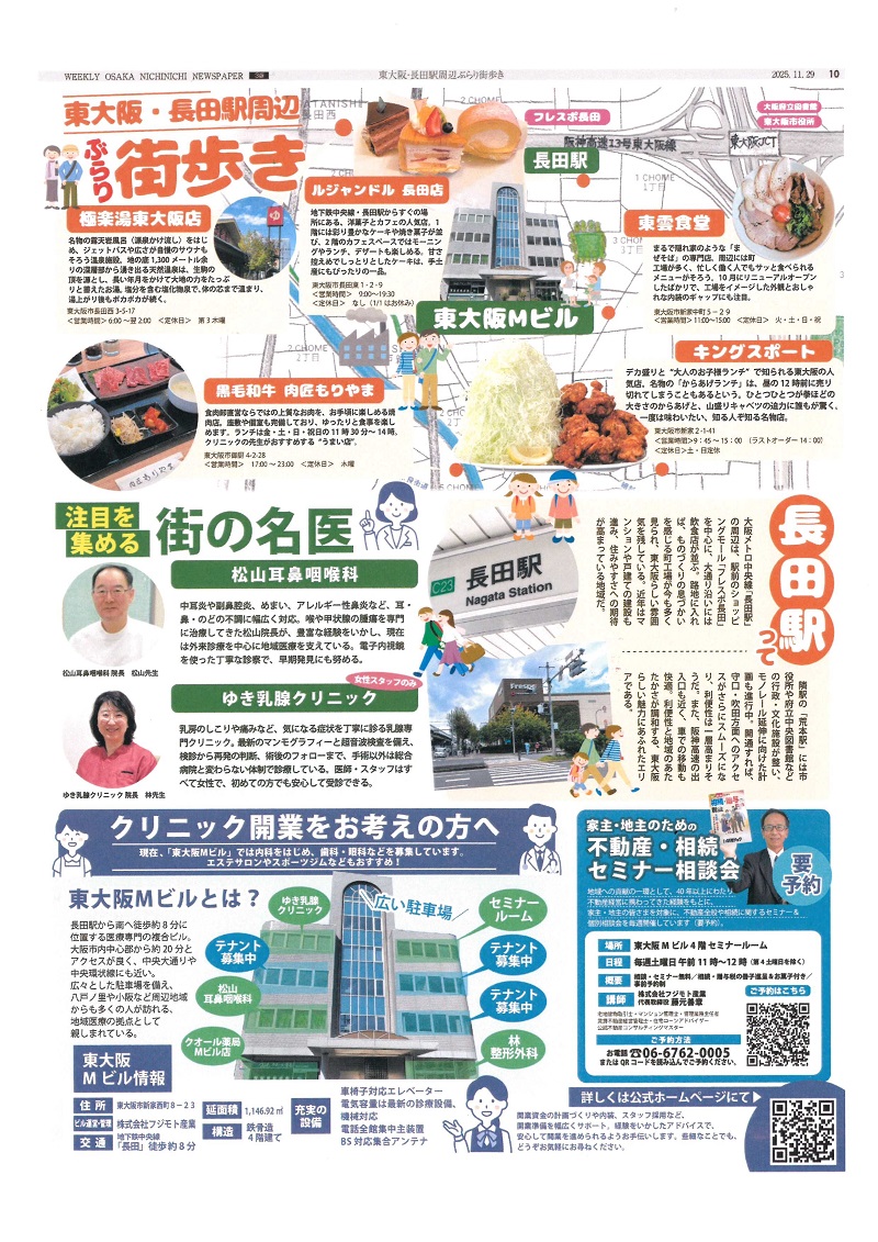 長田駅周辺のグルメ情報等に加え、「東大阪Mビル」に入居されている